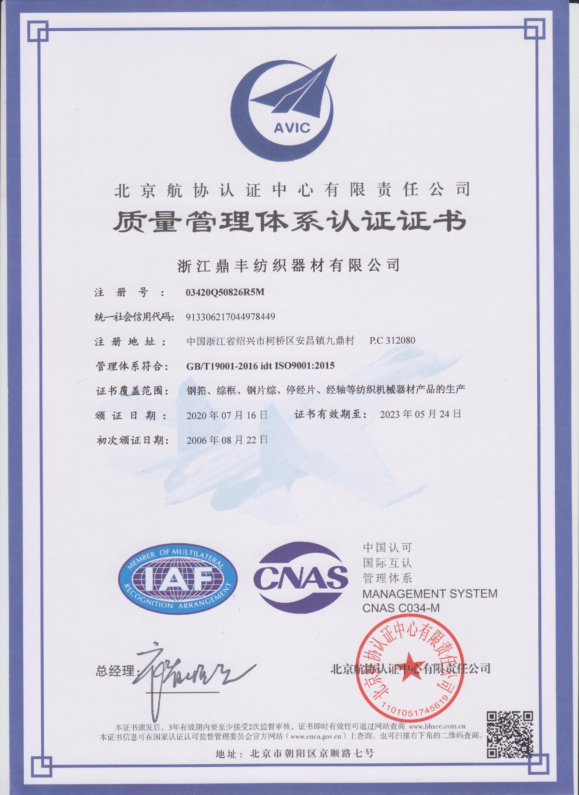 浙江鼎豐紡織器材有限公司始建于1986年,是一家專業(yè)生產(chǎn)各類(lèi)無(wú)梭織機(jī)用鋼筘:噴氣筘、噴水筘、劍桿筘、其他類(lèi)型鋼筘;鋁合金綜框、鋼片綜、停經(jīng)片、經(jīng)軸、織軸、卷布輥等產(chǎn)品及配件的民營(yíng)企業(yè)。